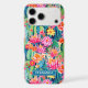 Customize this colorful watercolor iPhone 17 pro max case featuring cacti with beautiful blooms in pinks, oranges, reds and yellows with your name in a modern CAP font in white on teal. It's so modern and trendy!