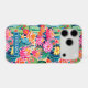 Customize this colorful watercolor iPhone 17 pro case featuring cacti with beautiful blooms in pinks, oranges, reds and yellows with your name in a modern CAP font in white on teal. It's so modern and trendy!