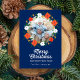 Spread some holiday cheer with this Christmas card featuring your photo framed by a beautiful botanical wreath set against a deep blue background. Below a lovely script font reads "Merry Christmas" and Happy New Year. The backside features your custom greeting/message and snow falling from the top of the card. Colorful and festive, yet sophisticated and striking. Please see our other wonderful holiday card collections by clicking on the Colorfulgalshop logo below.