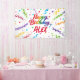 Colorful Striped confetti in rainbow colors with the text "Happy Birthday" in a fun, colorful font. Perfect for birthdays or milestone celebrations.