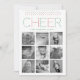 Spread cheer this holiday season with our colorful yet modern photo cards featuring NINE of your favorite square photos (perfect for Instagram snaps!) in a gridded collage layout. Design features "CHEER" in festive red and green marquee style dotted lettering with matching dot accents at the top. Personalize with your names and the year, or a greeting of your choice, using the template field provided. Back features an optional dotted diamond pattern in white on hunter green.