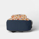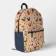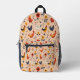 This fun backpack design features a colorful chicken art pattern with a pastel orange background and blue side and bottom patches. A fun chicken lover design for a gift to be used for back to school, diaper bag, picnics, the beach, travel and more.
