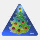 COLORFUL CHRISTMAS TREE IN GREEN GOLD SPARKLES TRIANGLE STICKER