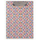 Colorful clipboard with geometric pattern of diamonds and triangles in orange, blue, and pink tones. Shown from the front and left angles.