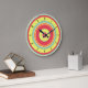 A colorful modern design made up of concentric circles in harmonious colors, with stylish numerals and hours and minutes scale.