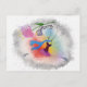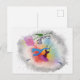 A dancer holding a flower is dancing joyfully in the colorful world. This post card is good for party invitations or any occasion.