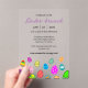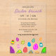 Colorful Easter eggs on a beautiful invitation to an Easter brunch and egg hunt.