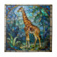 Bring the majestic beauty of the African savannah into your home with this stunning stained glass style giraffe ceramic tile. This intricate design features a towering giraffe set against a backdrop of vibrant jewel-tone blues, emerald greens, and golden accents, rendered in a classic mosaic art nouveau technique. The "lead lines" and fragmented color panels create a luminous, glowing effect that looks incredible printed on high-quality ceramic.