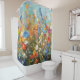 Transform your bathroom into a vibrant garden escape with this impressionist-style shower curtain. The design features a lively field of wildflowers in full bloom, painted with expressive brushstrokes and a rich palette of reds, oranges, yellows, blues, purples, and pinks. A bright sky blue background adds a fresh, airy feel, while the slightly abstract composition captures the joyful energy of nature in motion.