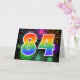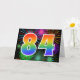 The front of this exciting, fun, and vibrant greeting card design features a colorful pattern inspired by celebratory fireworks, along with the number "84" having a multicolored rainbow like gradient pattern, on a black colored background. The inside features a customized greeting message, or could perhaps be cleared and left blank if a message is to be written by hand instead. A greeting card like this could be used to send a message acknowledging somebody’s eighty fourth birthday, or perhaps a couple’s eighty fourth wedding anniversary, or some other 84th event. [~Z0000342]