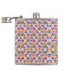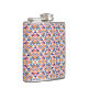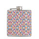 "Colorful flask with geometric pattern in blues, pinks, and oranges shown from front and left angles, conveying a vibrant, playful tone."