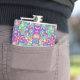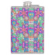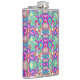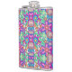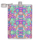 Colorful flask with vibrant, symmetrical floral patterns in pink, blue, green, and orange tones. The design conveys a playful, retro vibe.