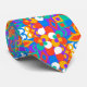 Colorful floral-patterned tie on a white background. The design features vibrant flowers in red, orange, blue, and yellow, conveying a playful tone.