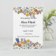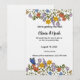 Elegant wedding invitation featuring hand-painted watercolor flowers in vibrant tones of pink, yellow, purple, and green. The clean layout and soft white background create a fresh, romantic look — ideal for spring, garden, or rustic weddings.