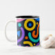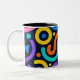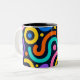 A lively mug design full of bold abstract shapes and vibrant curved lines inspired by modern pop art. The rich mix of yellow, teal, pink, and red creates a joyful rhythm — perfect for coffee lovers who crave creativity and color every morning.