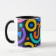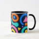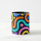 A lively mug design full of bold abstract shapes and vibrant curved lines inspired by modern pop art. The rich mix of yellow, teal, pink, and red creates a joyful rhythm — perfect for coffee lovers who crave creativity and color every morning.
