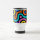 A lively mug design full of bold abstract shapes and vibrant curved lines inspired by modern pop art. The rich mix of yellow, teal, pink, and red creates a joyful rhythm — perfect for coffee lovers who crave creativity and color every morning.