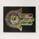 Colorful Flower Petals Turquoise Third Eye Hamsa Jigsaw Puzzle