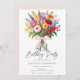 Colorful Garden Flowers Bouquet Pink Bow Birthday Invitation