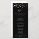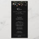 This colorful garden wildflower dinner menu card is perfect for a rustic wedding. The design features seamless hand-painted burgundy, red, navy, blue, yellow, and blush wildflowers with botanical leaves in a black background.