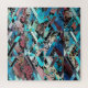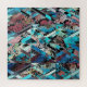 An intricate geometric pattern featuring a mix of triangles and lines. The composition includes a vibrant array of blues, pinks, and blacks.