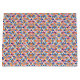 Colorful gift bag with geometric pattern of triangles and squares in orange, blue, pink, and white. Features white handles, shown from back and angled front.