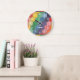 A colorful hexagon quilt block pattern themed clock with bold easy to see white numbers. Personalize it with your own name text in the easy Zazzle editor. Your choice of round or square. All graphic details digitally simulated. See many other sewing themed clocks in this collection at Clock O Rama on Zazzle, www.zazzle.com/clockorama