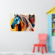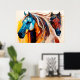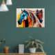Expressive painting of two horses in vibrant colors! Dynamic brushstrokes in blue, orange, and red create movement and energy. Art perfect for home decor, fabric prints, and art prints. Conveys animal freedom and elegance in a modern and colorful style!