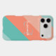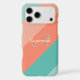 A colorful pastel green and orange diagonal striped phone case with template name and initial letter monogram is a idea for a new phone or special occasion gift. Personalize the text with a name and/or initials, remove any or all text or use the edit design tool to select a font style, size, and color you prefer.