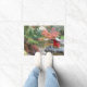 Decorative doormat that features the photo image of a colorful, autumn Japanese garden pond scene that includes a red garden shrine. A lovely, botanical garden scene! Use indoors or in covered entryway areas. Photo: Point Defiance Park Japanese Garden