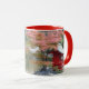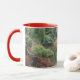 Enjoy your favorite hot or cold beverage in this coffee mug that features a wrap-around photo image of an autumn Japanese garden pond scene showcasing red maple leaves and a miniature, red Shinto shrine. Select your mug style and color as desired. Photo: Point Defiance Park Japanese Garden