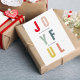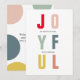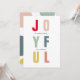 Vibrant colored letters, trees, holly and cancy canes in a cheerful message suitable for a non-religious holiday greeting. I especially liked it on the black background which made the design pop.
