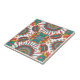 This ceramic tile features a vibrant and intricate mandala design with a floral bohemian aesthetic. The centerpiece showcases an explosion of symmetrical patterns in shades of teal, coral, orange, and yellow, creating a lively and harmonious color palette. Surrounding the central motif are detailed botanical elements, including stylized leaves, flowers, and ornamental accents, which add depth and complexity to the overall composition. The design radiates energy and warmth, making it perfect for decorative walls, tabletops, or as an artistic statement in eclectic or Mediterranean-inspired interiors.