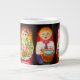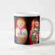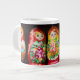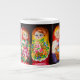 photography of russian nesting dolls in multi colors with ladies holding flowers and aprons.