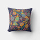 Colorful Mexican Folk Art Birds and Flowers Blue Cushion