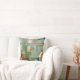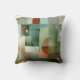 Pillow featuring a modern abstract Bauhaus style design in green, teal and gold.