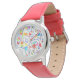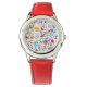 The bright red leather strap perfectly complements the artistic dial, making it a standout accessory for school or play. Designed with clearly labeled “hour” and “minute” hands, it’s not just stylish—it’s also a wonderful tool to help young ones learn to tell time in a fun and engaging way.