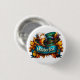 A Colorful Round Oktoberfest Button Pin With Beer, Fall Leaves Hat and Banner