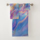 Elevate your bathroom decor with our vibrant opal swirly marble texture bath towel set, adding a touch of elegance and flair to any space.
