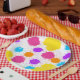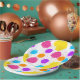 Brighten up your next party with these modern colorful paint splattered paper plates colored with blue, pink, orange, yellow and purple.
