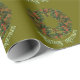 Colorful Paisley Wreath on Green Christmas Wrapping Paper