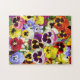 A wonderful and vibrant collection of gorgeous pansies, so many beautiful colors, tumble over this puzzle,