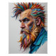 Immerse yourself in a vibrant, colorful oil paint sketch-inspired portrait rendered in a medium-detail 3D papercraft style. The subject is a weathered, stern-faced older man in a three-quarter profile, gazing intently to the side. His voluminous, windswept spiky hair and long, flowing beard are meticulously constructed from individual shaped pieces of colored paper, layered and folded to create textured volume and dynamic movement. The facial features—pronounced cheekbones, nose, and brow—are also crafted from layered paper, with visible layers and folded edges adding depth and character. The expressive oil paint application features bold brushstrokes and rich, blended hues that enhance the tactile, handcrafted feel of the paper forms. The interplay of light and shadow highlights the cut edges, layers, and textured surfaces, emphasizing the constructed, three-dimensional nature of the scene. Set against a clean, subtly textured background, this artwork beautifully combines the expressive qualities of oil paint with the tactile intricacy of papercraft, resulting in a striking, colorful portrait full of depth, energy, and handcrafted charm.