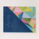 Colorful Pattern Monogrammed Blue First Name Shape Jigsaw Puzzle