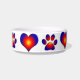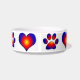 This is a heavy, durable bowl decorated with Tibbies of many colors, the perfect size for hungry/thirsty Tibs. The design is interesting and printing clear.