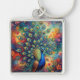 Colorful Peacock Feathers and Flowers Key Ring