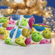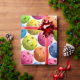 A fun wrapping paper design of colorful pickleballs in shades of fuchsia, yellow, blue, orange and green.