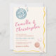 Celebrate your love with a touch of retro charm ✨ This fun and stylish wedding invitation features a warm neutral background accented with playful disco-inspired line art, musical details, and soft wavy borders. The hand-lettered script typography adds a romantic, personal feel, perfectly balanced with clean, modern text for your event details.