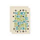 A seamless mid-century modern pattern composed of rounded rectangles in olive green and turquoise, each containing off-white insets, floats across a cream background. These geometric forms are interwoven with a network of thin black lines, circular nodes, and four-pointed starbursts, creating a rhythmic grid of atomic-era connectivity. The composition balances organic irregularity with structured repetition, evoking vintage optimism and retro futurism. Ideal for textiles, wallpaper, or surface design, this piece channels the playful precision of 1950s design with a fresh, product-ready edge.