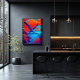 A striking expressionist seagull flying above an electric coastal scene filled with bold color contrasts and dynamic ocean movement. Perfect for beach house decor, modern homes, ocean lovers, and anyone who values freedom, travel, and artistic wall art.